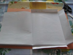 Next you fold the paper into three parts, two equal ones, like you were to fold it in two, leaving the upper part smaller.