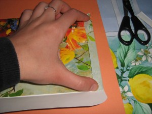 You fold the remaining margins and put the bottom part on top gluing it. Or you can let the margins on the outside like I show you in the pic but I don’t usually do it ‘cause I don’t like the way it looks.