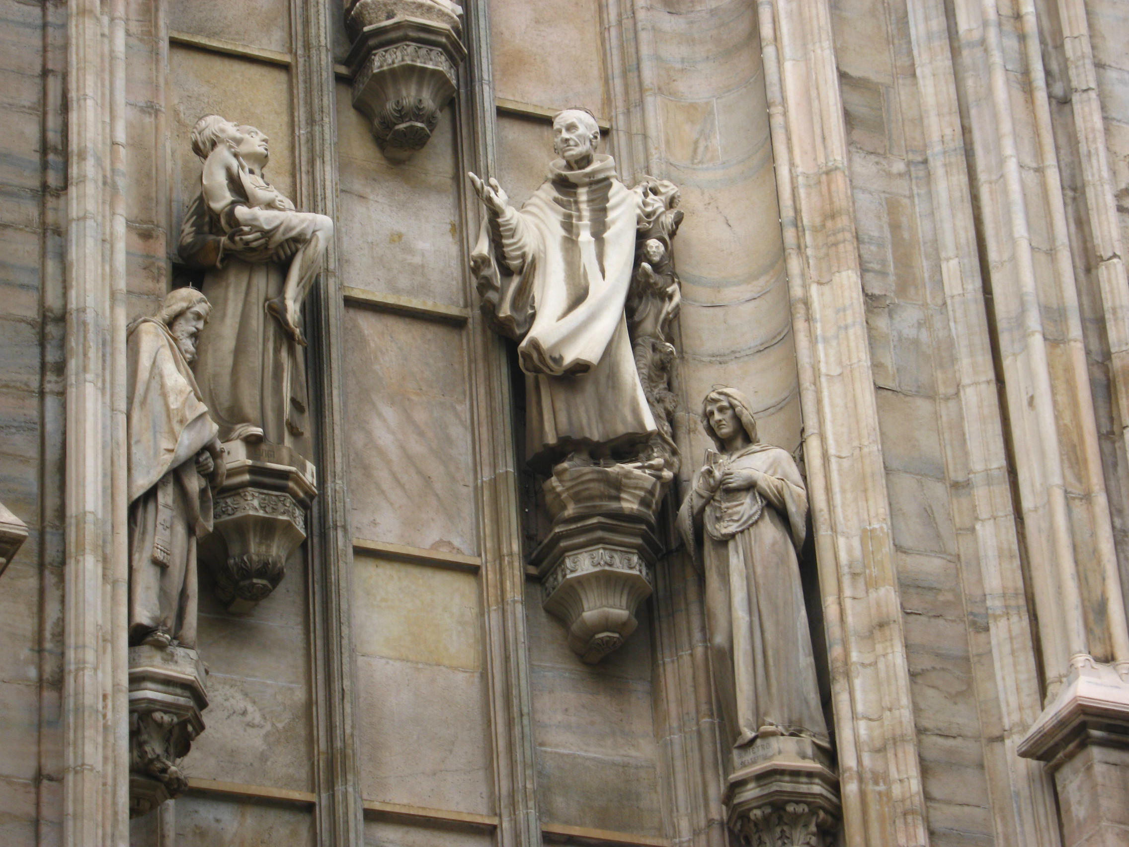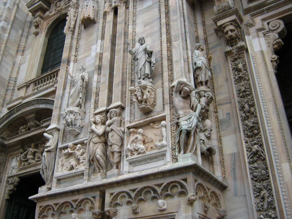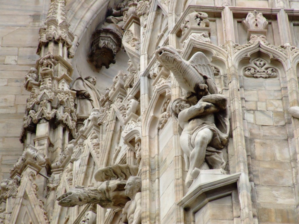 In my guidebook the writers even included a quote from a letter Oscar Wilde wrote to his mother while visiting Milan in 1875: “The Cathedral is an awful failure. Outside the design is monstrous and inartistic. The over-elaborated details stuck high up where no one can see them; everything is vile in it”. But since “The portrait of Dorian Gray” disappointed me, I didn’t trust his rude words about the Duom. No sir, what you see in the middle of the piazza is an interesting, curious and impressive structure.